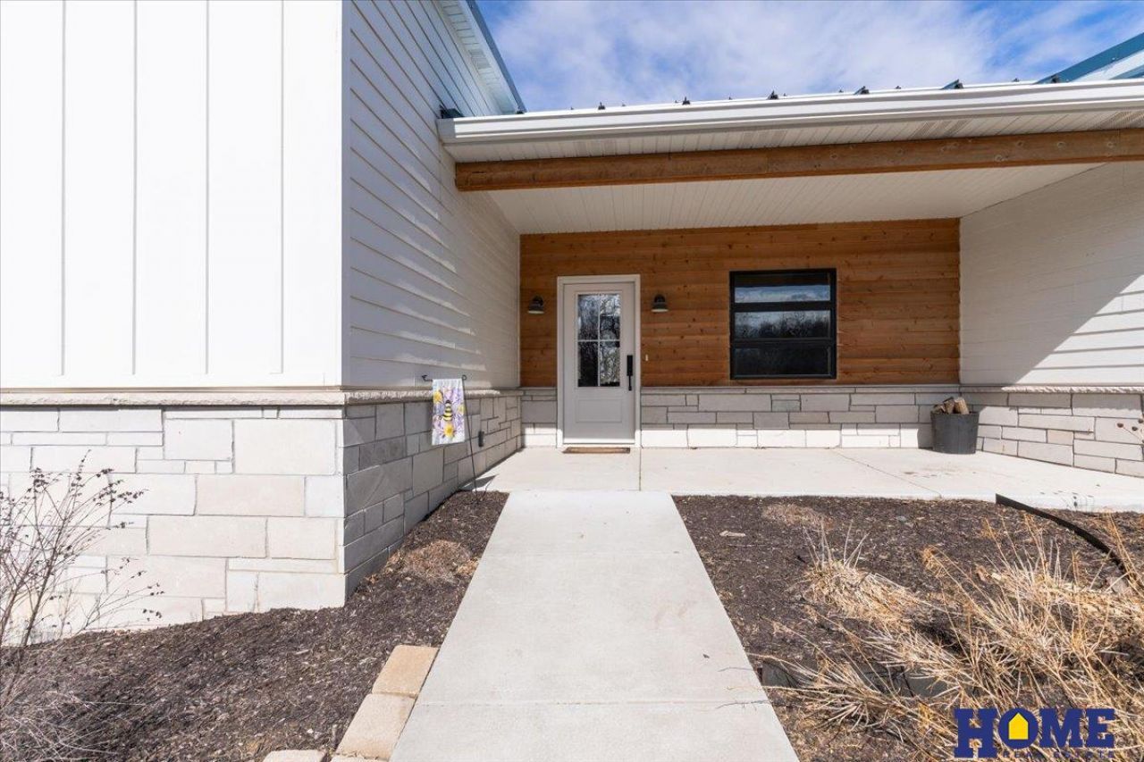 Welcome to this Scandinavian-inspired ranch home on 4.5 wooded acres in the private Raven's Nest subdivision. This 4 bed, 3 bath home features 14' ceilings, luxury vinyl plank flooring, quartz countertops, and a wood-burning fireplace. The open-concept main floor is a show stopper with floor-to-ceiling windows that overlook the surrounding wooded landscape and fill the home with natural light. The main level also includes a dedicated office, while the finished basement offers a second large office, spacious living area, fourth bedroom with a bathroom, and wet bar- perfect for entertaining. Enjoy the outdoors with a large deck, patio, private outdoor shower, shed, metal roof, and extra parking slab. Located in a 250-acre community with winding roads, access to hiking and ATV trails, and two lakes. Peaceful and private, yet only 15 minutes to Louisville and 30 minutes to Omaha!
